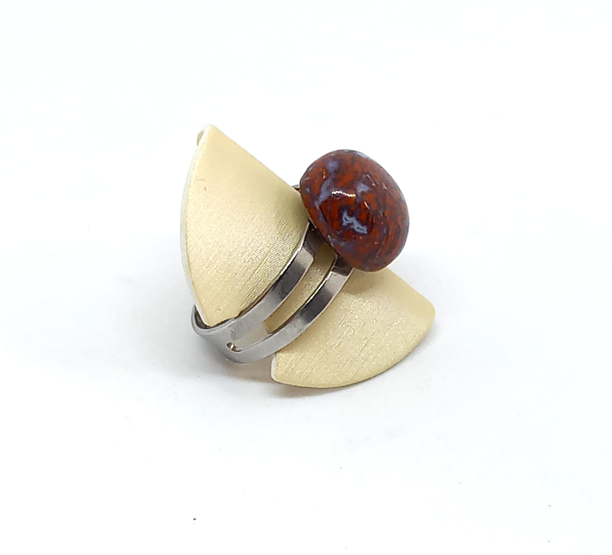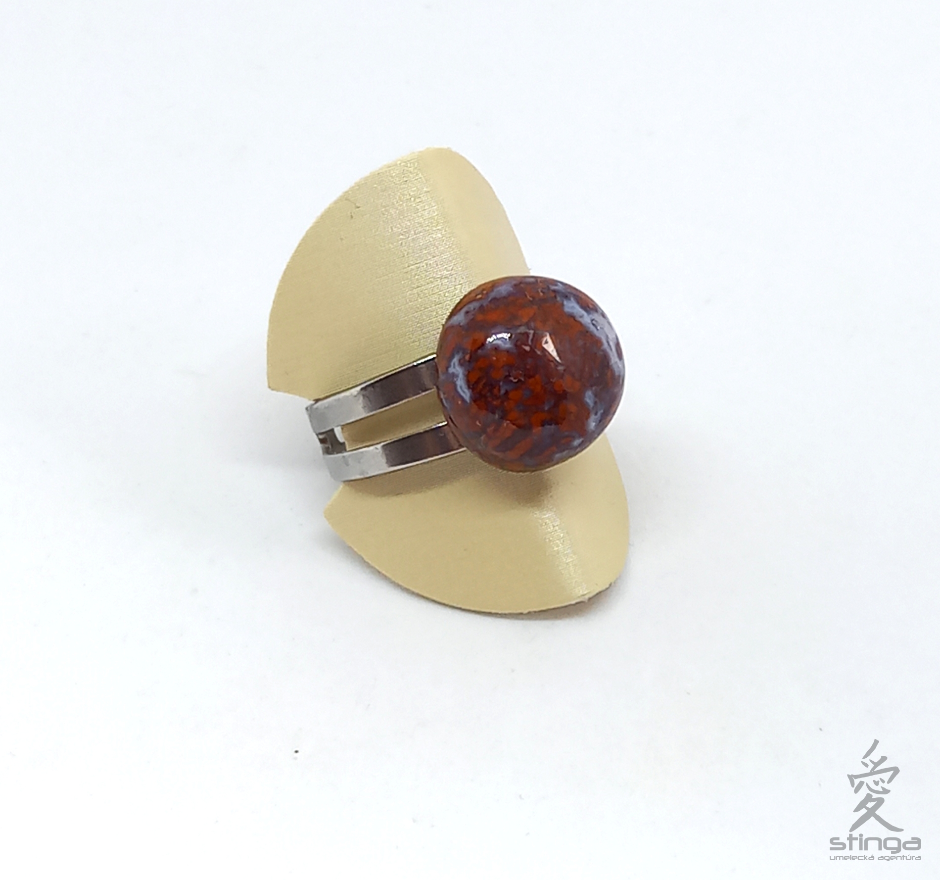 Krásny nastaviteľný prsteň z jaspisoachátu osadený v chirurgickej oceli