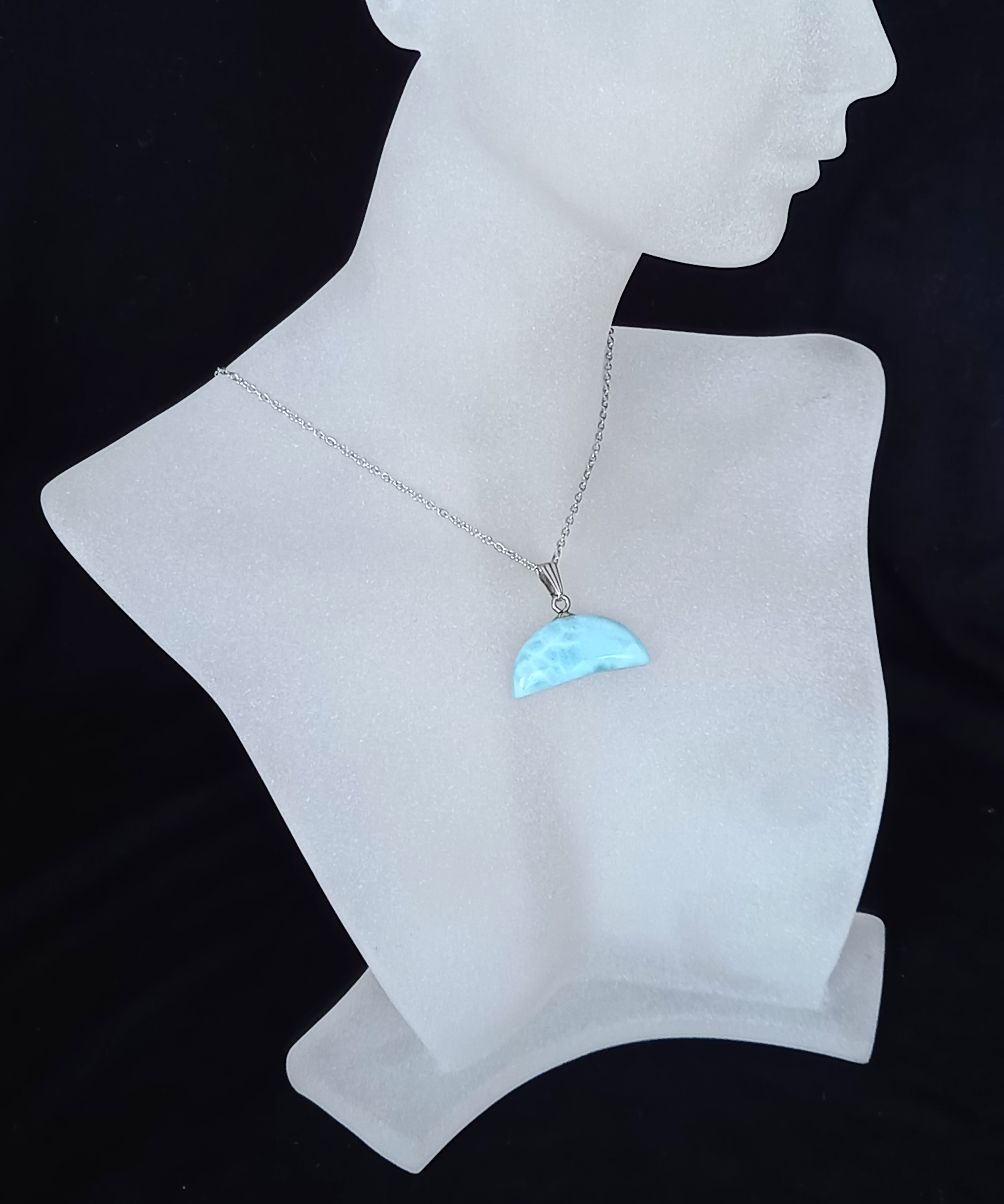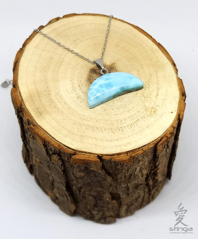 Nádherný exkluzívny prívesok z larimaru je vyrobený vo vyhľadávanom tvare obráteného mesiace v tzv. tvare LUNICA. Je zavesený na retiazke z chirurgickej ocele a je balený v milej krabičke čiernej farby 8x5cm. MUST HAVE. Pre výber z viac podobných výrobkov navštívte našu vzorkovňu v Batizovciach pod Tatrami. Termín po dohode na tel. čísle 0905350079