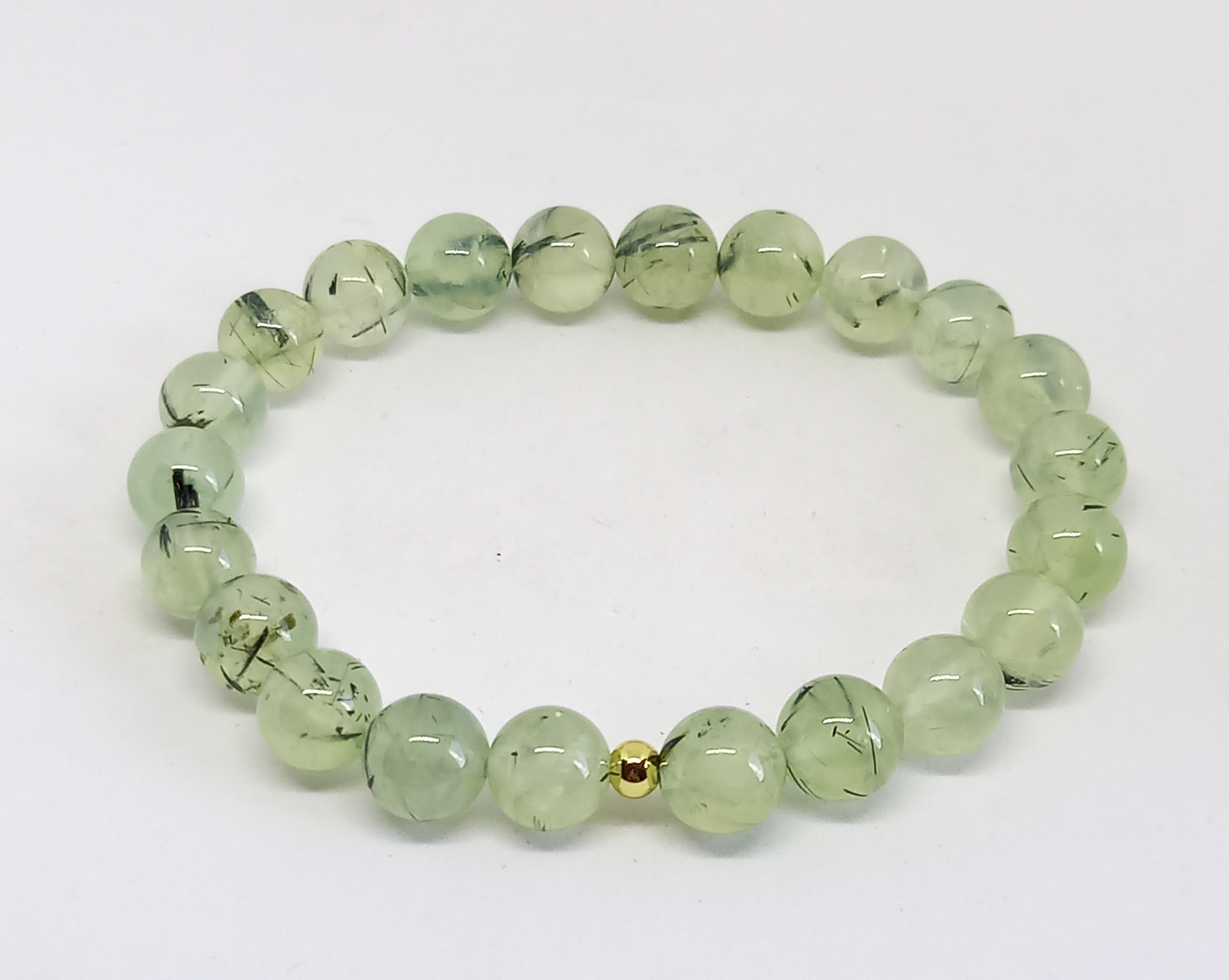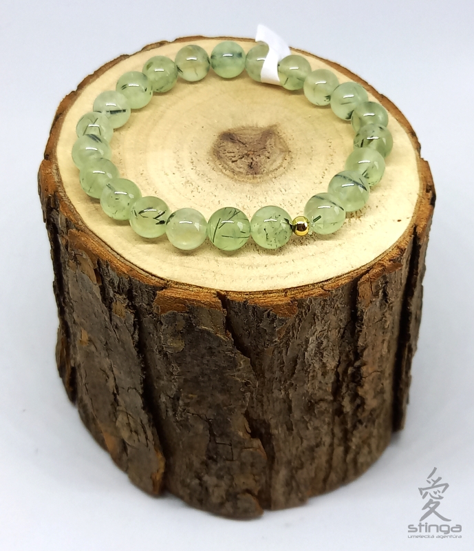 Nádherný náramok z prehnitu je ozdobený guličkou z chirurgickej ocele. Nádherný kúsok!