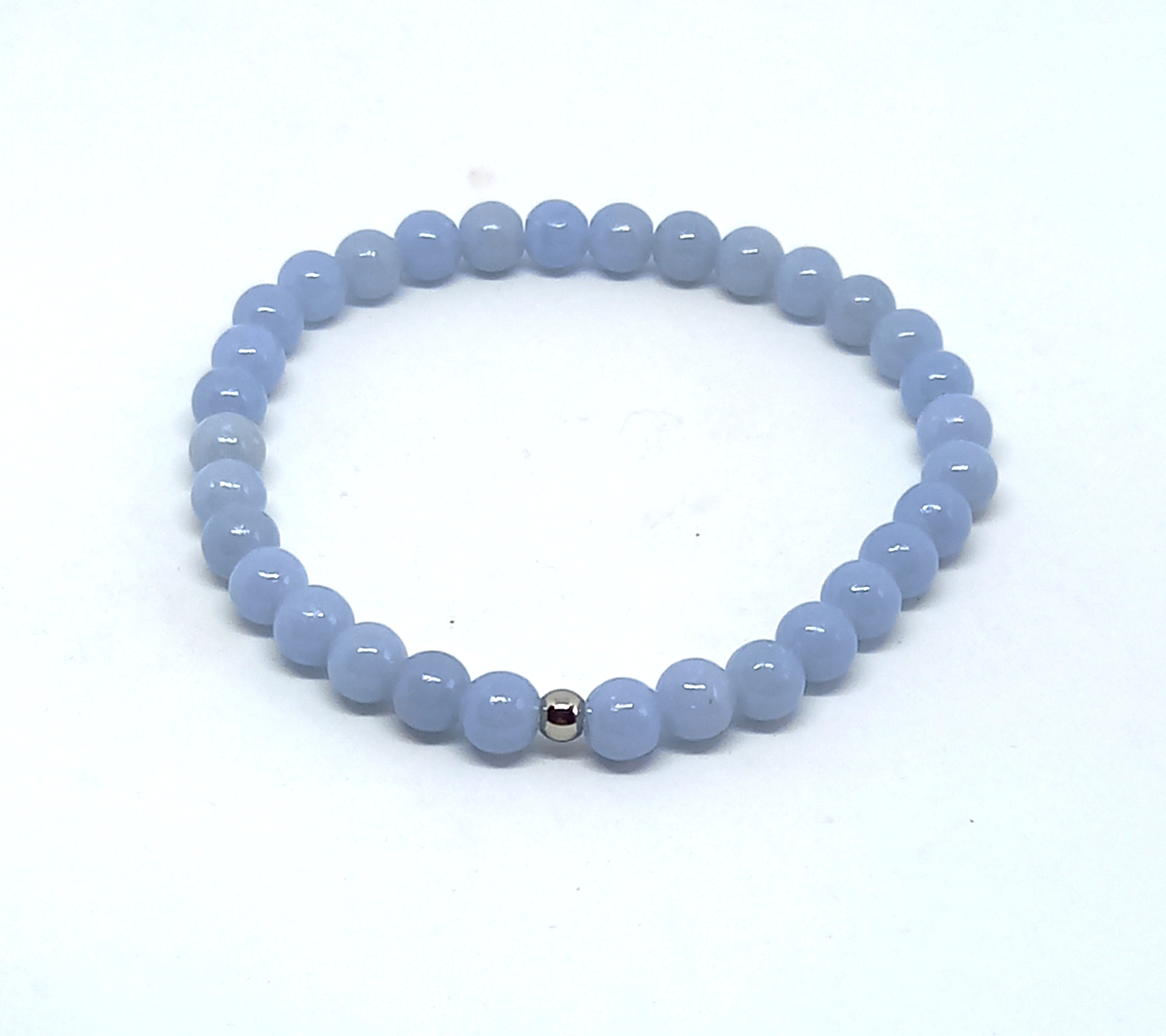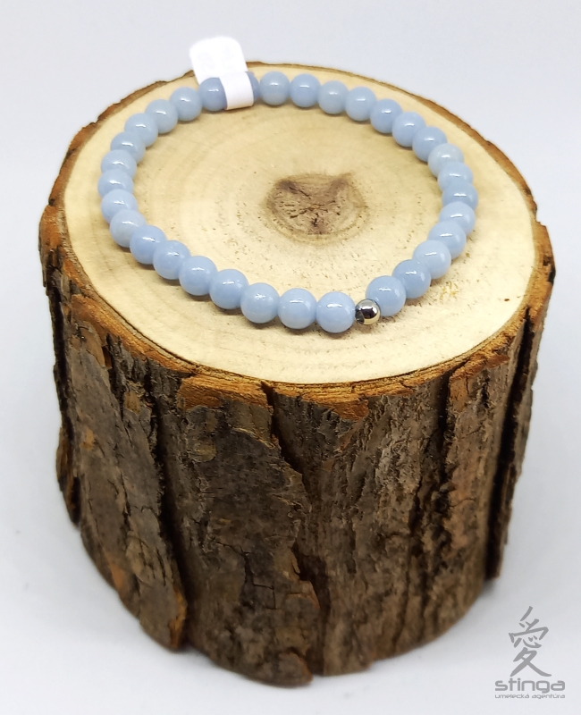 Jemný náramok z angelitu je ozdobený guličkou z chirurgickej ocele