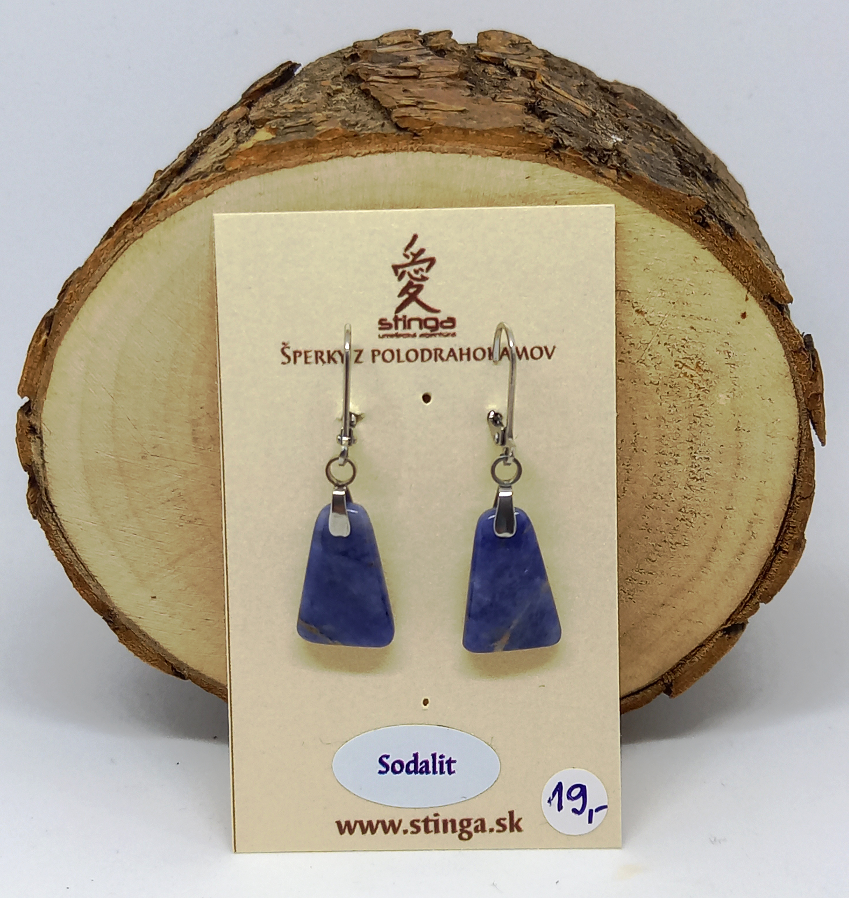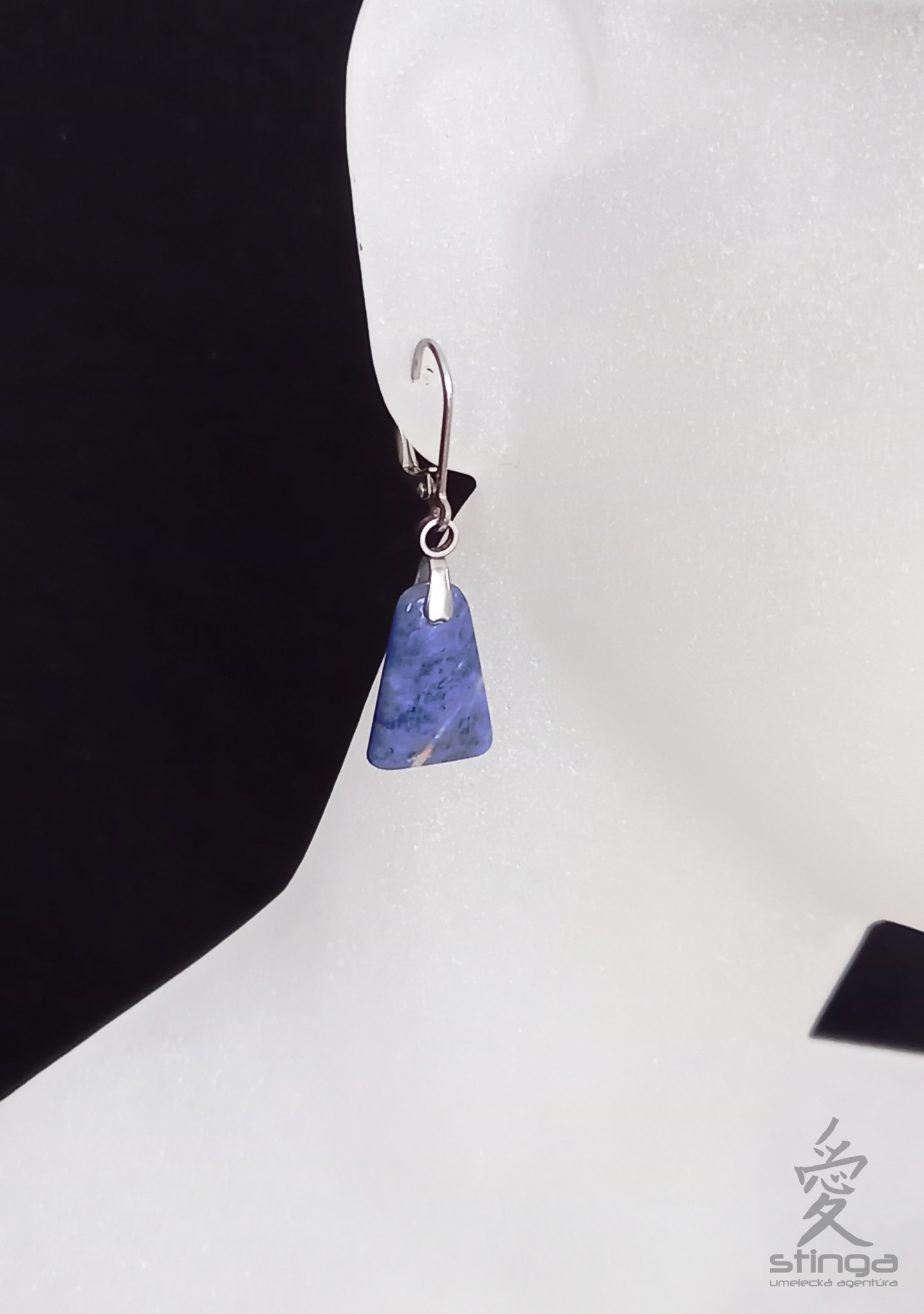 Krásne ručne vybrúsené náušnice zo sodalitu sú zavesené na uzatvárateľných uškách z chirurgickej ocele