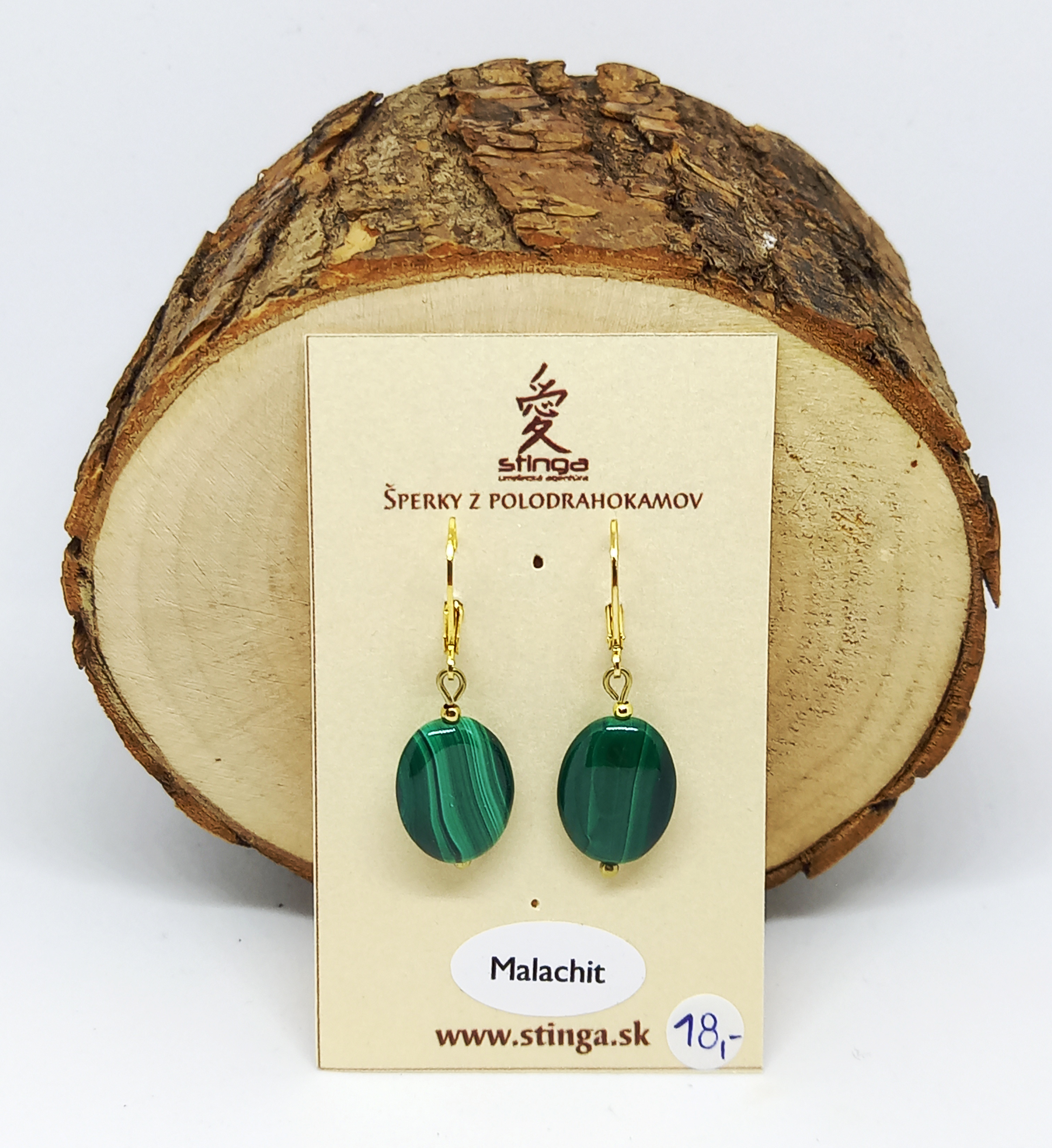 Nádherne prírodne vykreslené náušnice z malachitu v kombinácii so zlatou chirurgickou oceľou sú kúskom, ktoré sa oplatí mať!